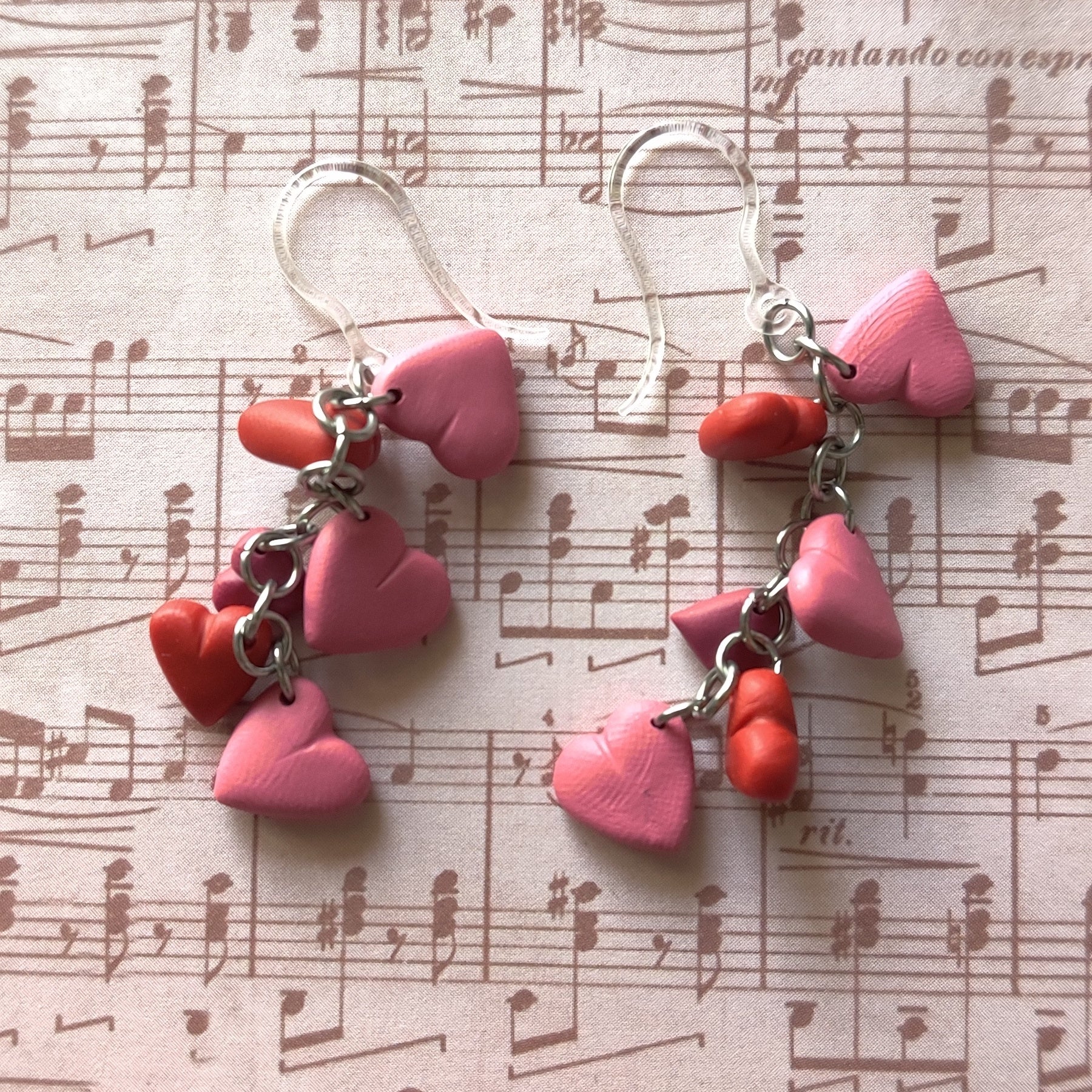 These heart stack dangle earrings would make a great gift for the special someone in your life. The hearts come in three different shades of pink and red with a total of 6 hearts on each earring.