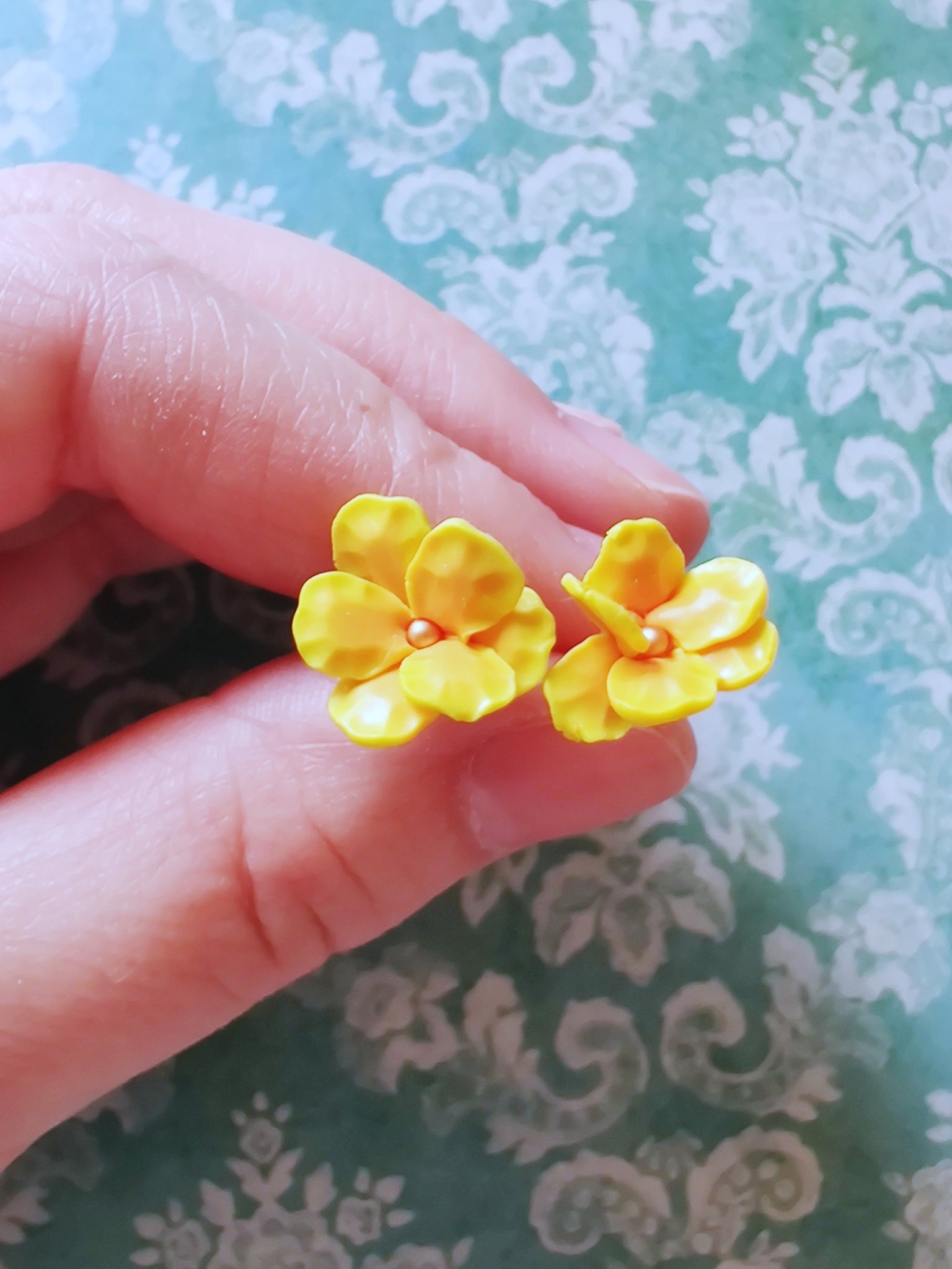 Earring care: Wash gently with mild soap and water using a cotton swab when needed. DO NOT use jewelry cleaner to clean your earrings. Earrings are made with high quality polymer clay, but should be handle with care, as some designs may be delicate.