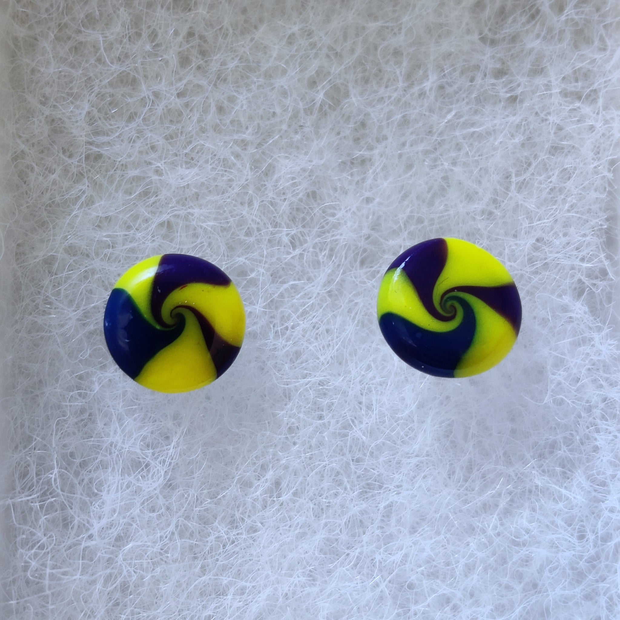 Yellow, Blue, and Purple Swirl Metal Free Stud Earrings