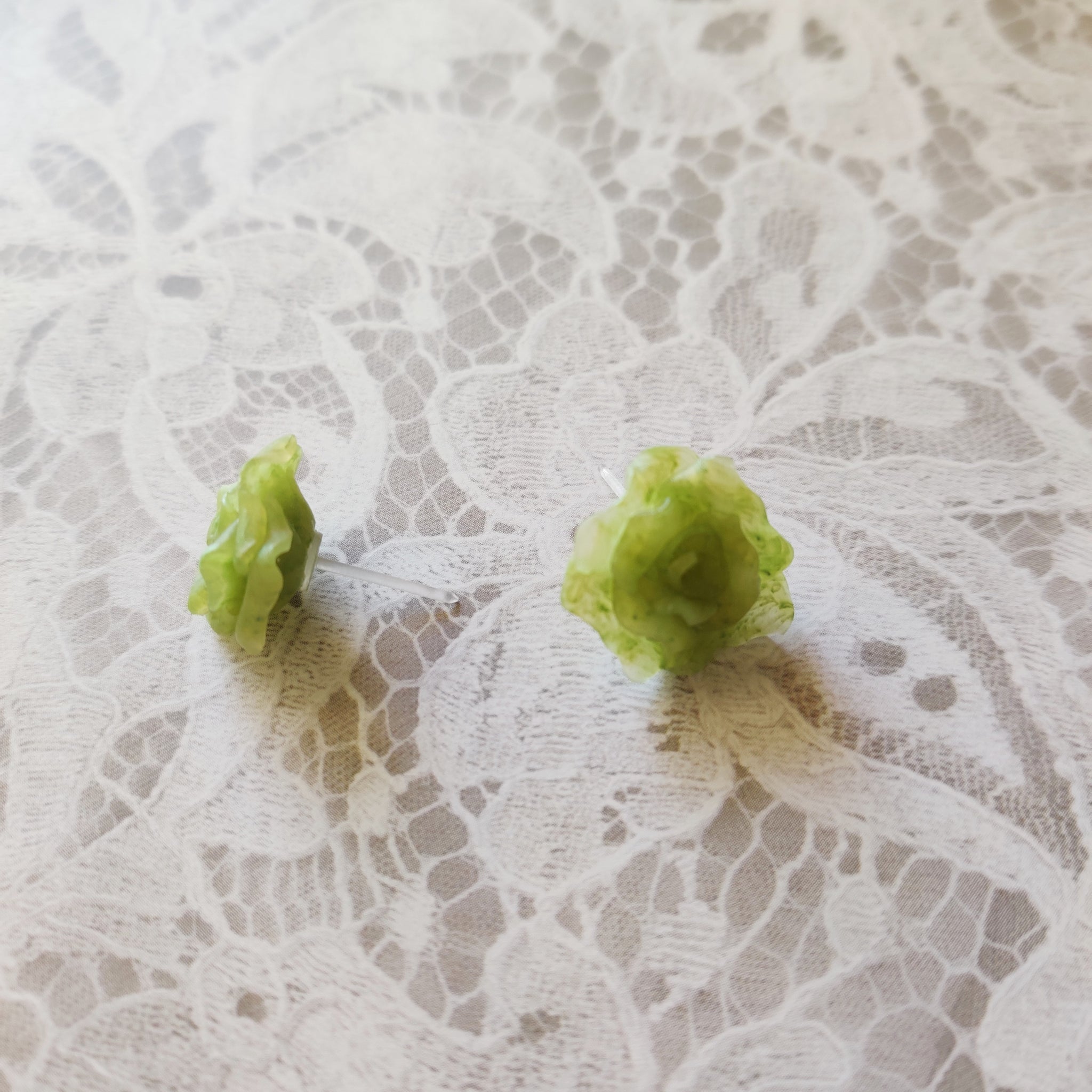 These faux Jade red rose earrings are a perfect gift for a gardener or flower lover for a special gift.  Best of all, they are metal free and safe for those with metal allergies!