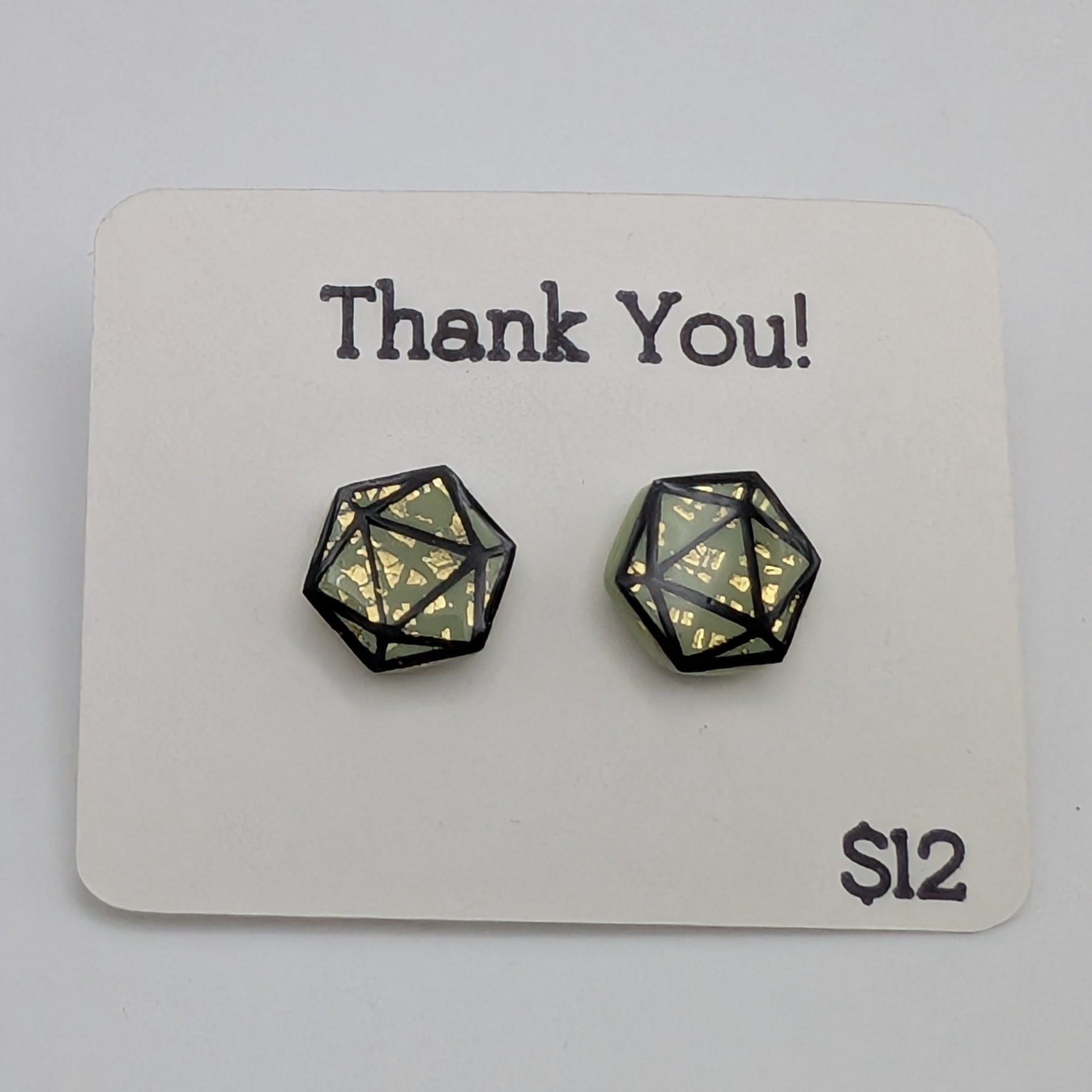 These earrings are a fun gift for the minimalist gamer in your life. They are polymer clay with faux gold leaf and have a shiney resin finish.