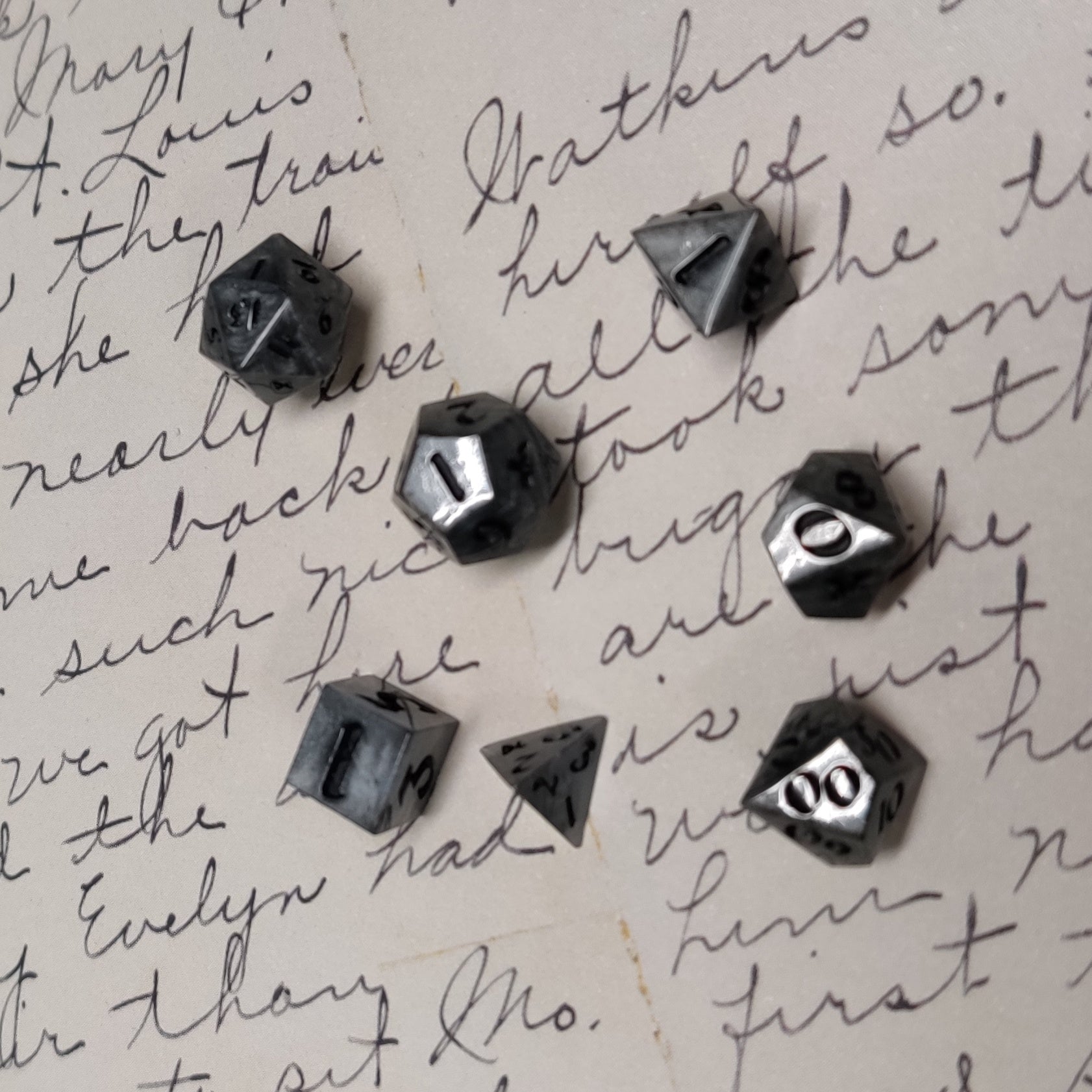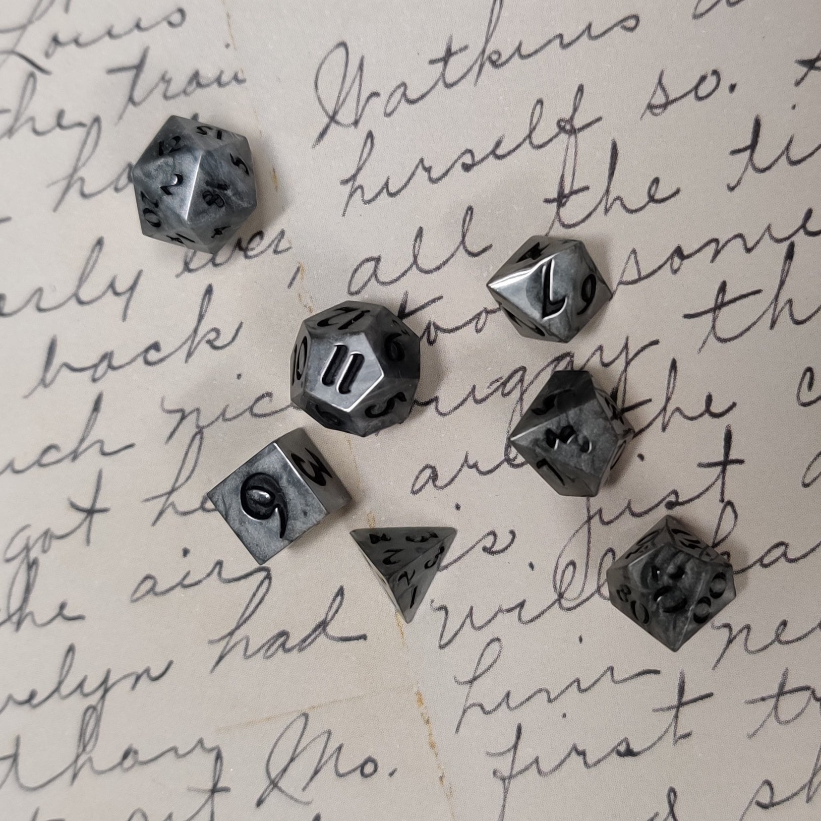 Hello Everyone! Thank you for your interest in the handmade dice at Creation Undefined. This order will include one 7 set of dice for RPG gaming.